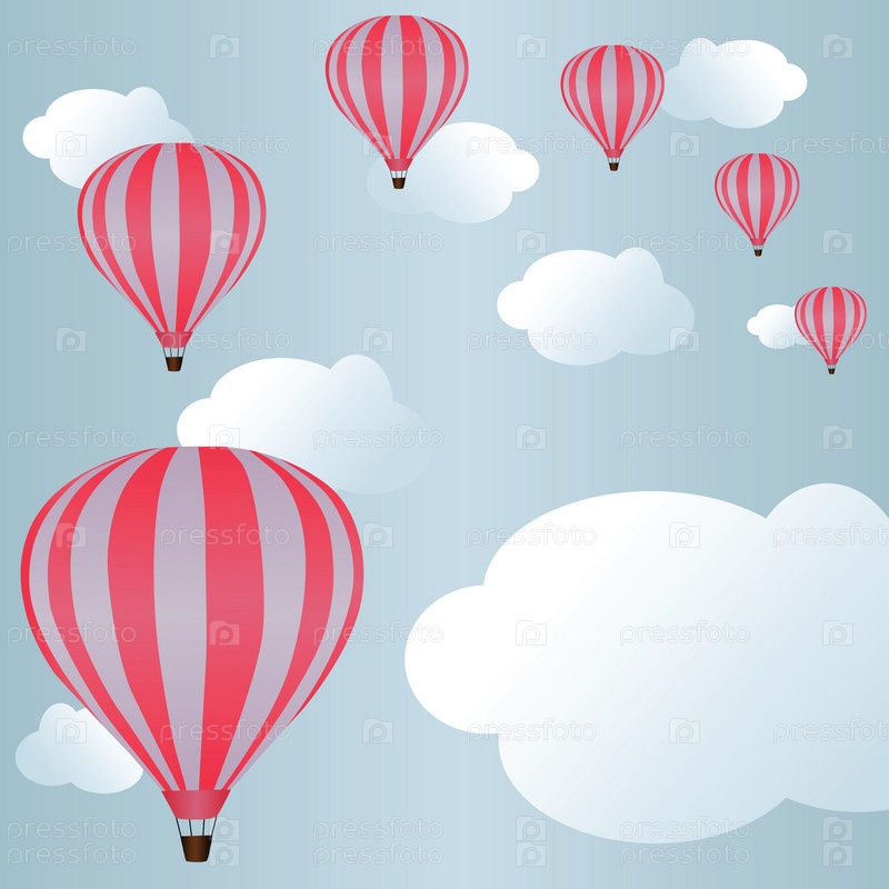 Воздушные шары среди облаков в небе