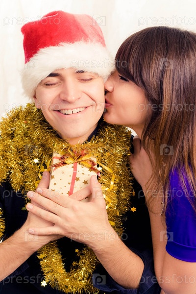 Влюбленная пара с новогодним подарком