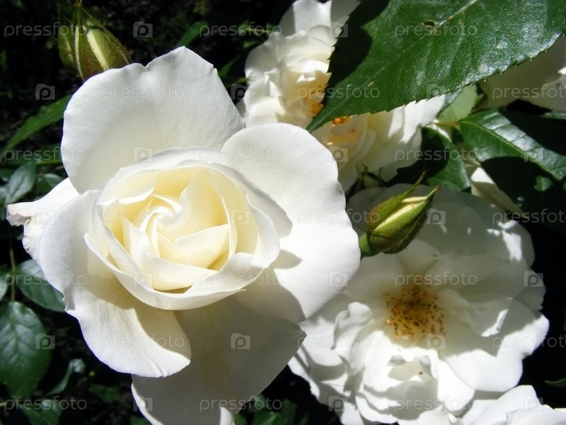 Бутоны белых роз Близкий день в солнечных лучах