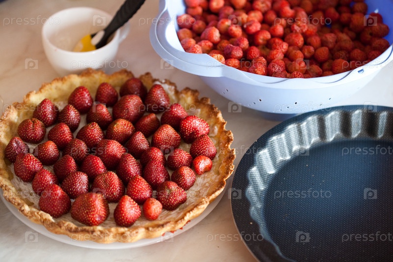 Приготовление пирога с ягодами клубники и земляники