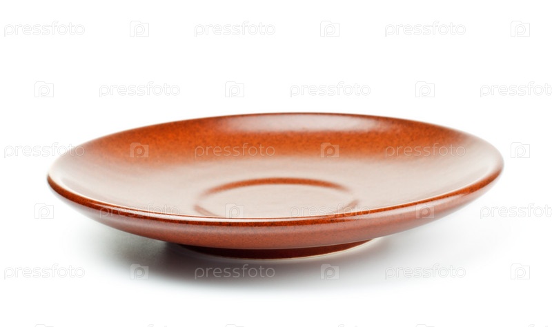Коричневая керамическая тарелка, изолированная на белом фоне