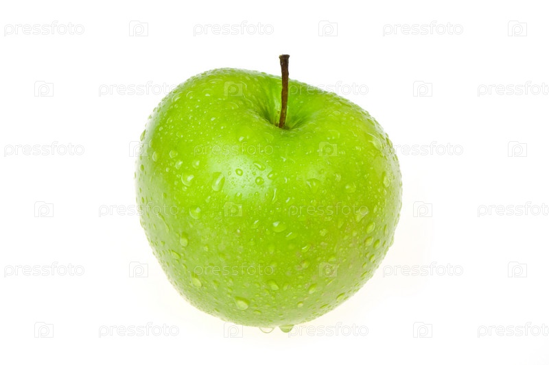 Зеленое яблоко с каплями воды