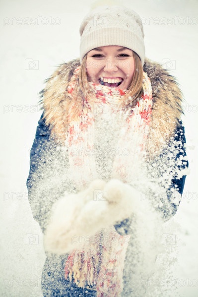 Портрет веселой девушки на зимней улице