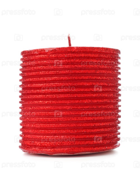 Толстая красная свеча крупным планом, изолированная на белом фоне