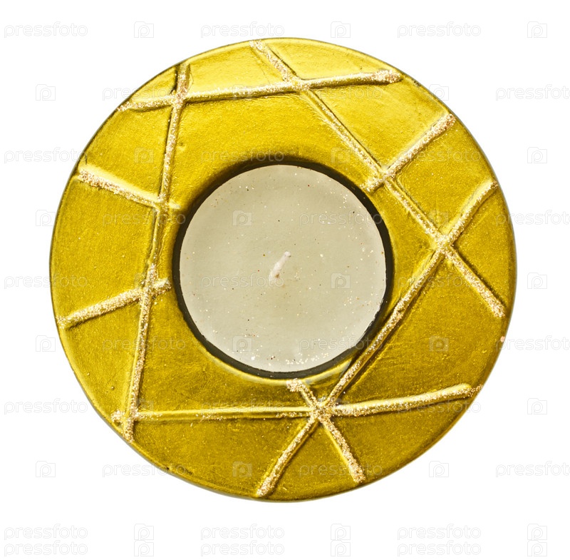 Желтая круглая свеча на белом фоне