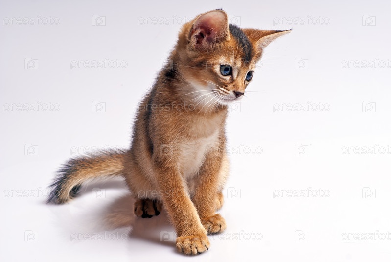 Рыжий котенок на белом фоне