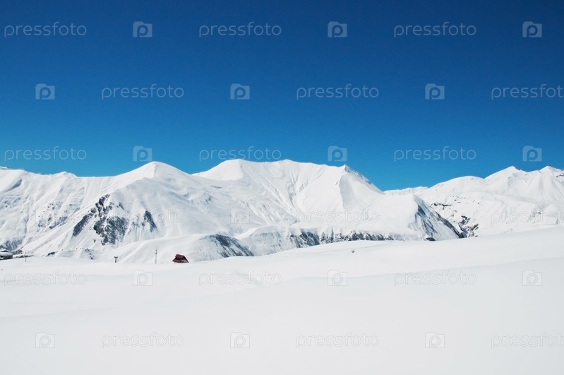 Белоснежные горы под синим небом, Домбай