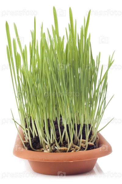 Рассада овса крупным планом, на белом фоне