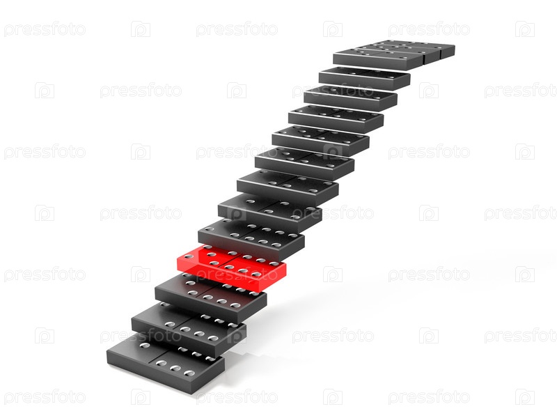 Черные доминовые фигуры сформулированы в ряд лестницы.Одна из них красная