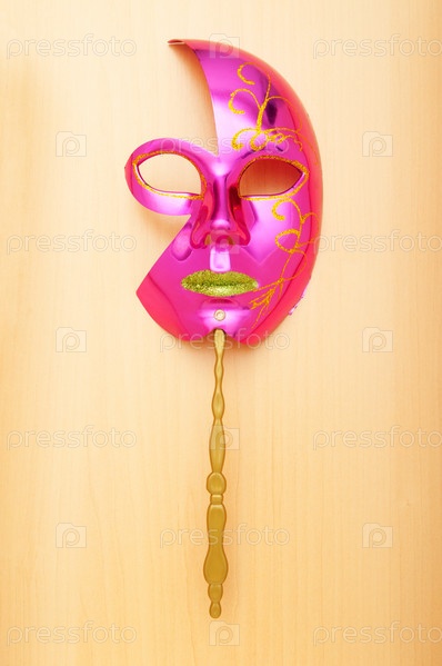 Розовая карнавальная маска на палочке