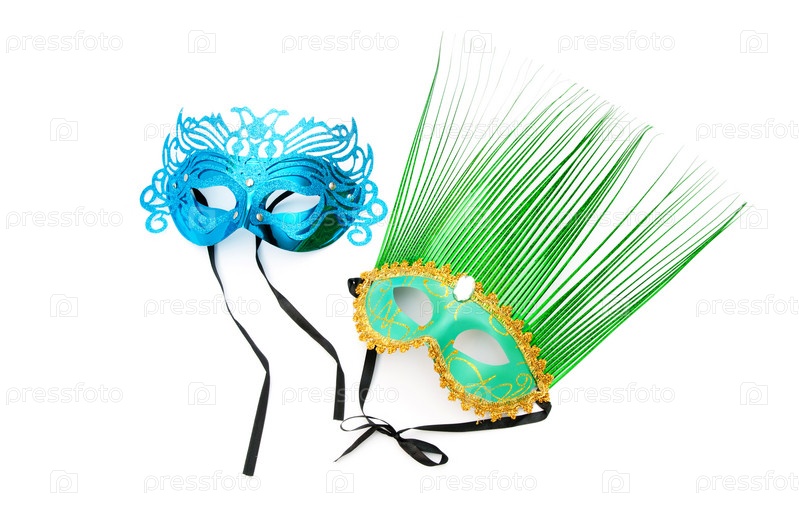 Синяя и зеленая карнавальные маски на белом фоне