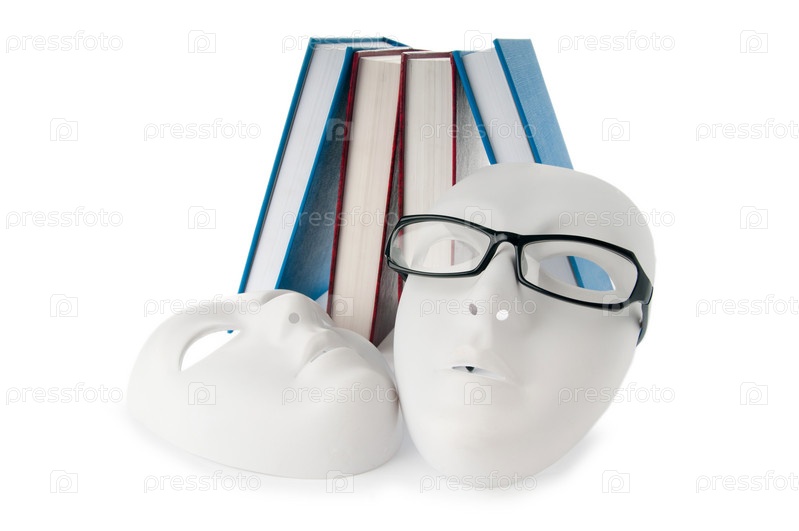 Белые маски в очках и книги на белом фоне