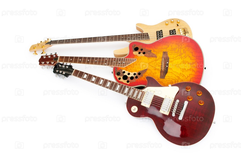 Три электрогитары на белом фоне