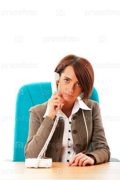 Бизнес-леди разговаривает по телефону за рабочим столом