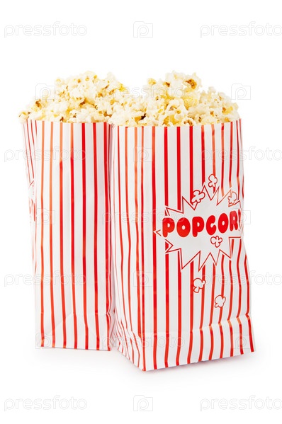 Два пакета с попкорном на белом фоне