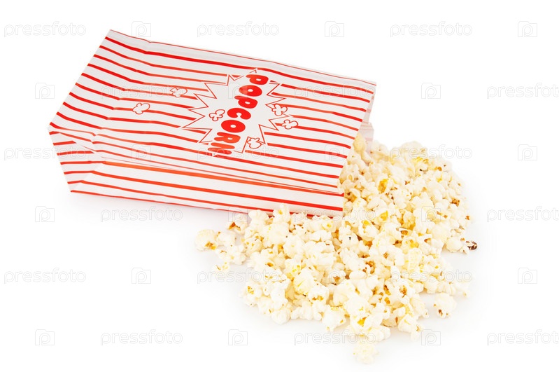 Пакет с попкорном на белом фоне