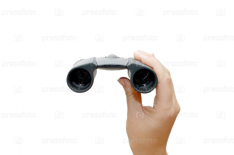 Бинокль в женской руке изолирован на белом фоне