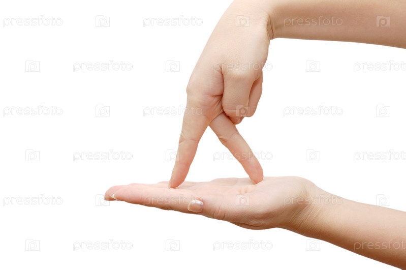 Женская рука изображает идущего человека