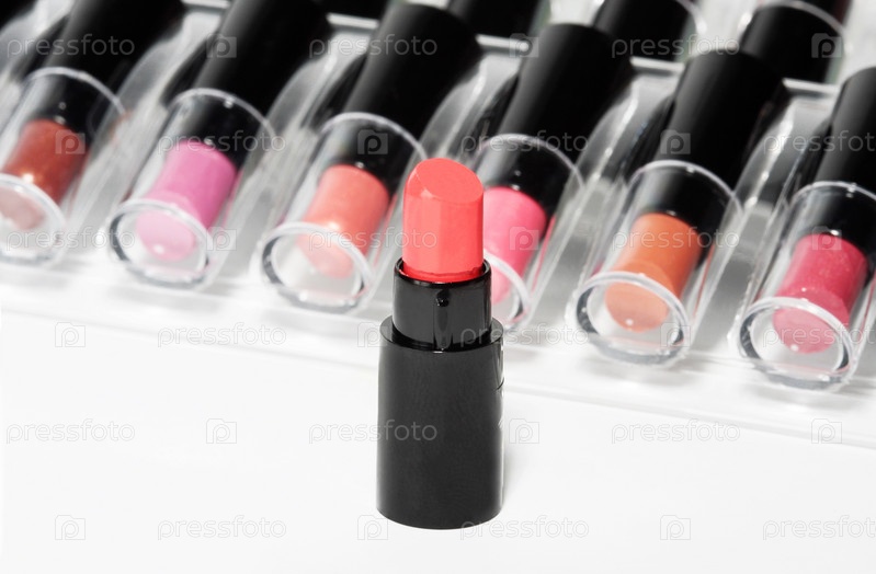 Набор губных помад в упаковке на белом фоне