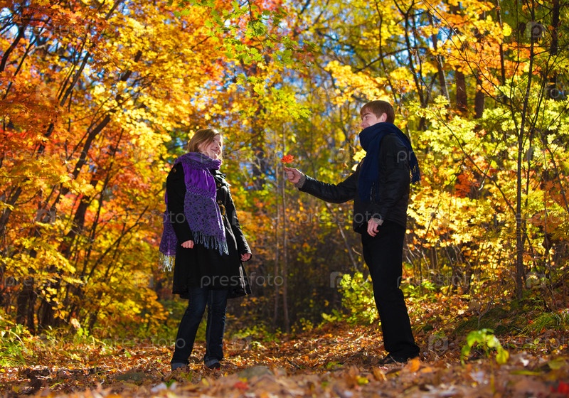 Парень и девушка в осеннем парке