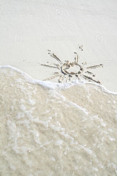 Солнце нарисовано на мокром песке