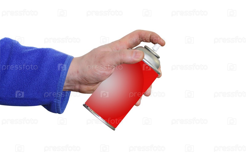 Рука с баллончиком на белом фоне