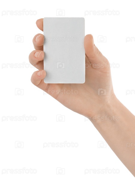 Рука держит пустую визитку на белом фоне