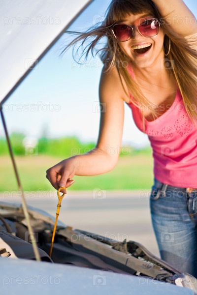 Девушка ремонтирует автомобиль