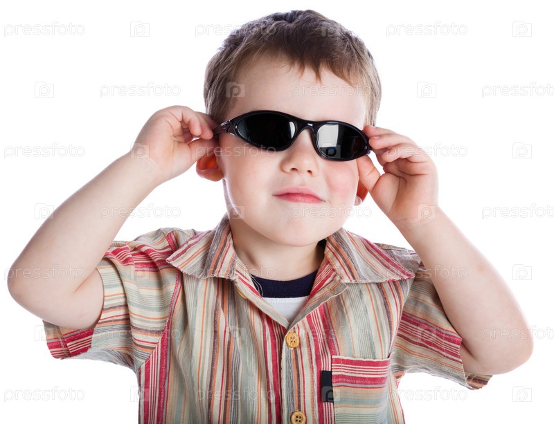 Мальчик в темных очках, изолирован на белом фоне