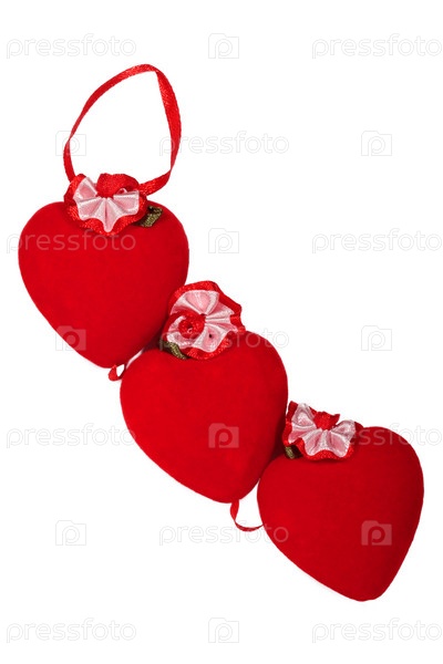Три красных сердечка с петелькой на белом фоне