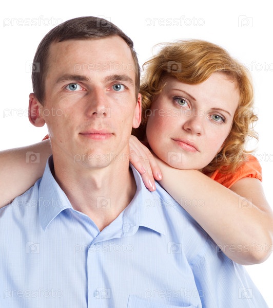 Молодая пара, изолирована на белом фоне