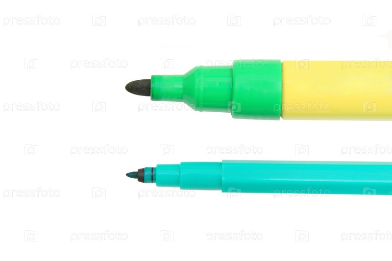 Две ручки разной толщины на белом фоне изолированы
