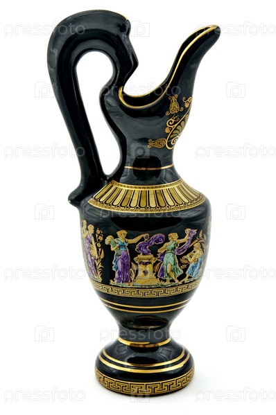 Сувенирный кувшин (керамика), выполненный в греческом стиле на белом фоне