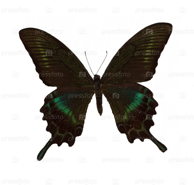 Бабочка Парусник Маака крупным планом, на белом фоне