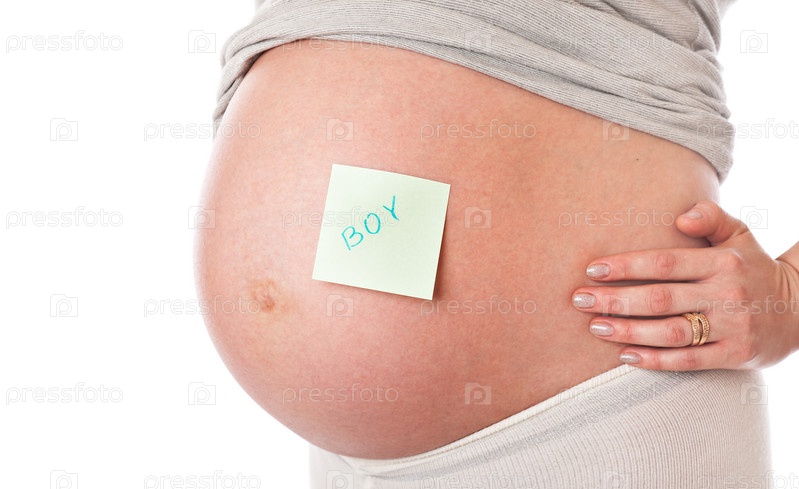 Живот беременной женщины. Изолирован на белом фоне