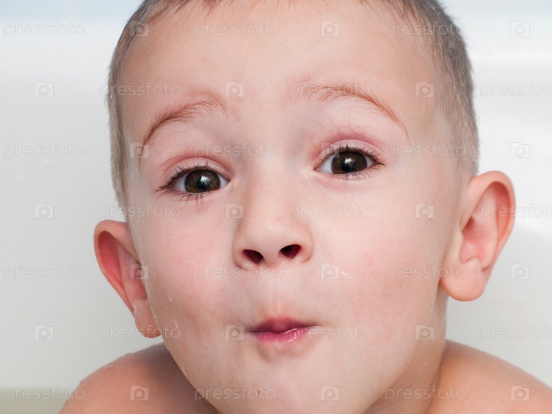 Маленький красивый мальчик весело купается