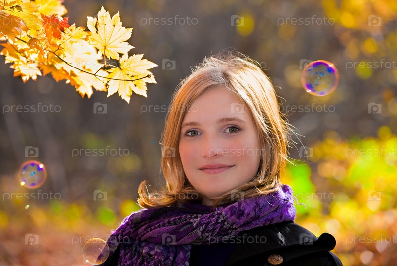 Молодая красивая девушка в осеннем парке