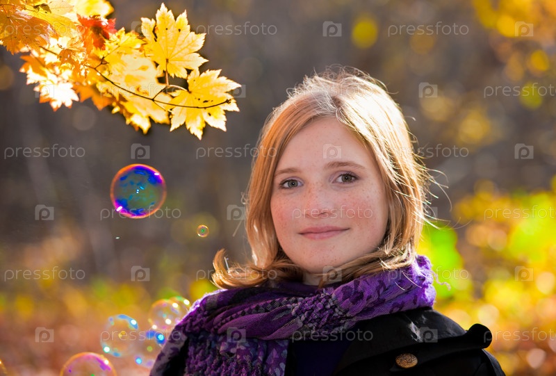 Красивая молодая девушка гуляет в осеннем парке