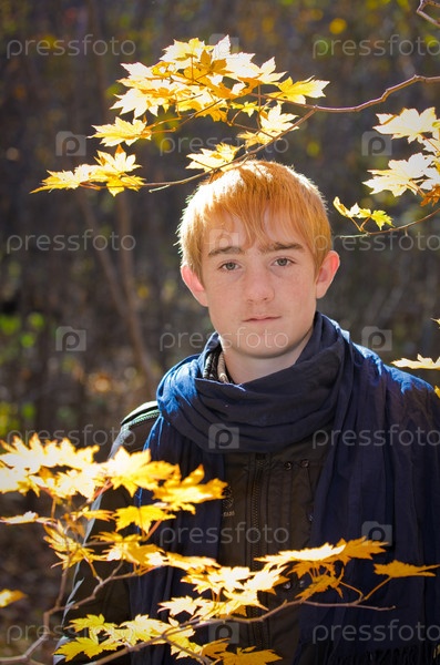 Портрет рыжеволосого молодого человека в осеннем парке