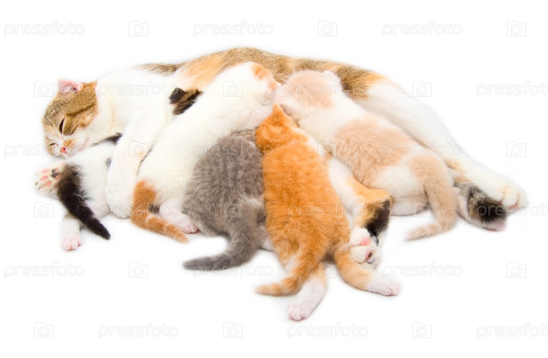 Породистая кошка с котятами