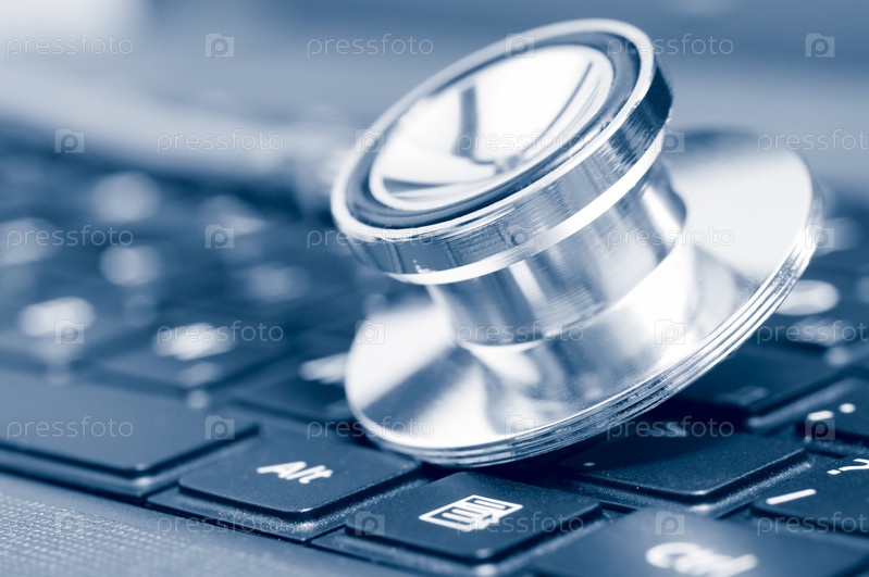 Стетоскоп и клавиатура ноутбука крупным планом