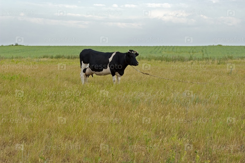 Корова, пасущаяся на лугу