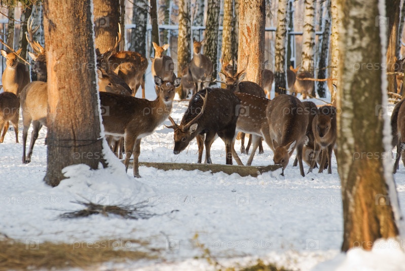 Стадо оленей зимой