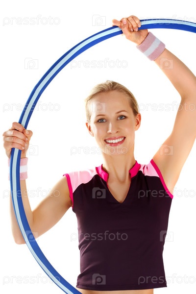 Девушка с синим обручем на белом фоне