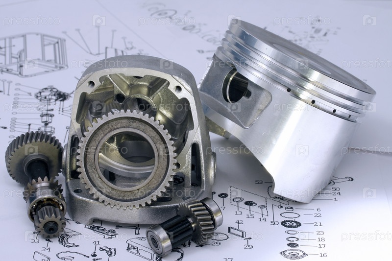 Деталь машины в разобранном виде лежит на чертеже
