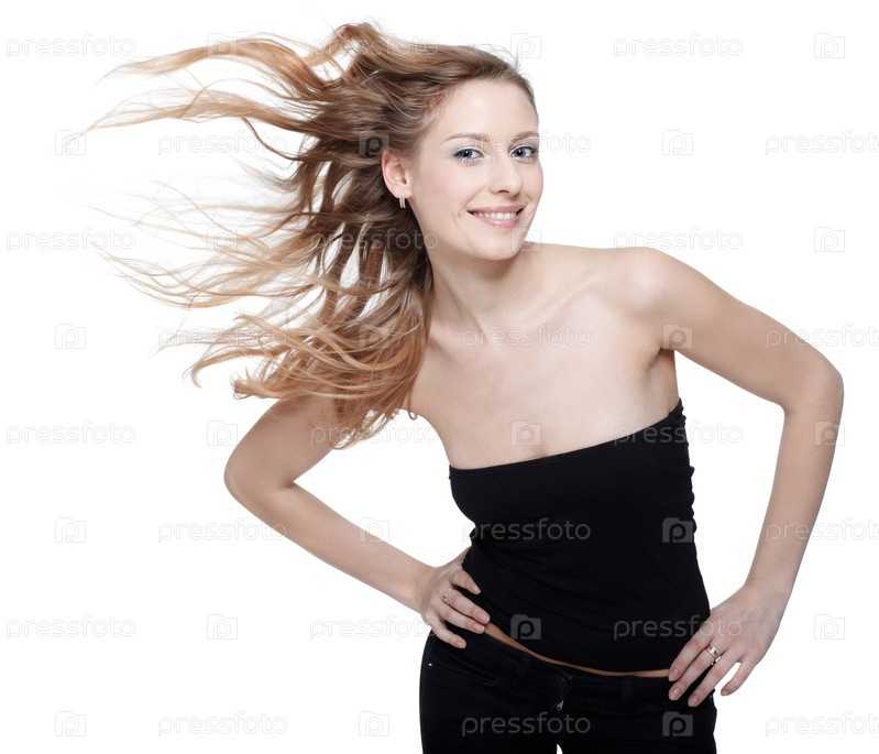 Красивая молодая девушка взмахнула волосами