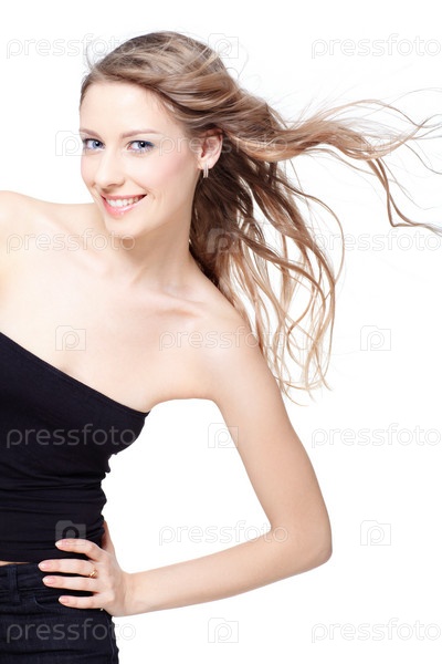 Красивая молодая девушка с развевающимися волосами