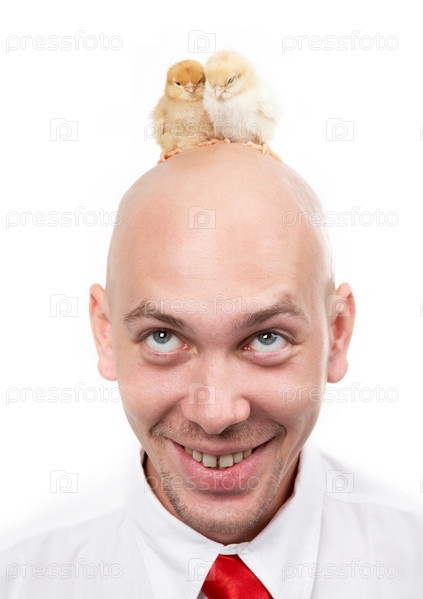 Цыплята на голове лысого мужчины
