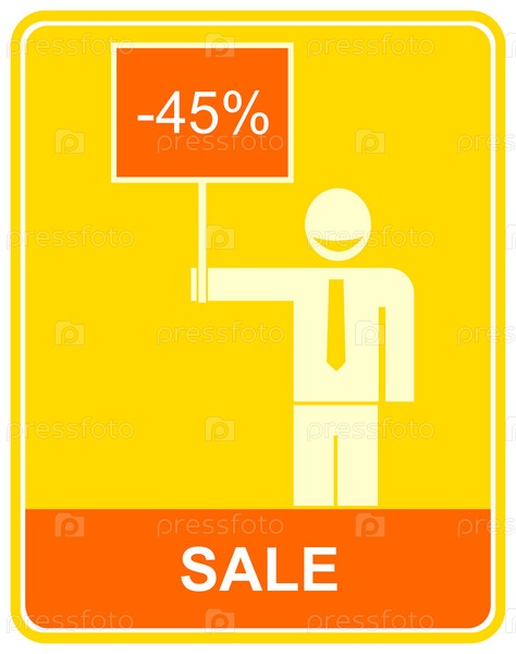 Векторальный знак - распродажа. забавный человек держит в руке пустую тарелку. стилизованная икона. иллюстрация для дизайна рекламных материалов