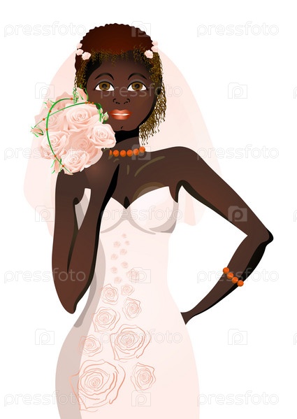 Счастливая темнокожая невеста на белом фоне